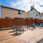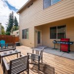 Stepping inside you will be greeted by the formal entry before the layout flows into the spacious open living room where a gas fireplace provides a beautiful centerpiece, amplified by the 9′ ceiling heights on the main floor and window blinds that assure comfortable privacy. The fabulous kitchen is ready to meet all of your culinary needs and showcases gorgeous Knotty Pine cabinets, slab granite counters and stainless steel appliances including the refrigerator. The cheerful dining area extends its dimensions to an incredible fenced outdoor space with covered patio and new wood deck.